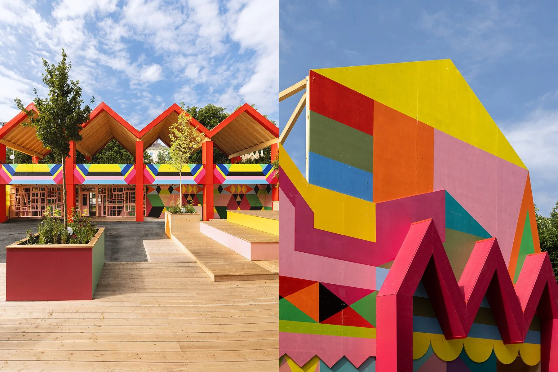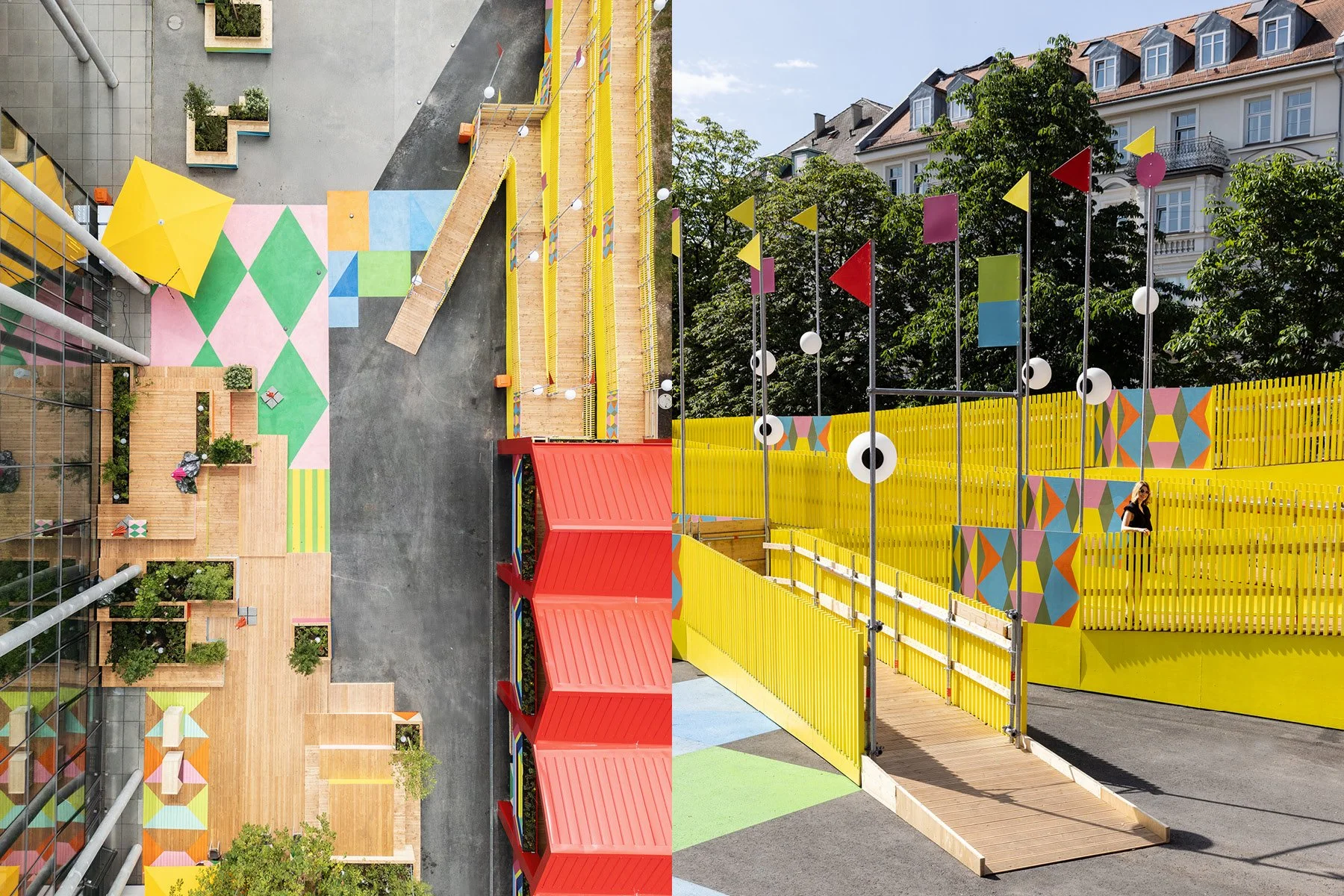 FLUX ist ein neuer, lebendiger Ort für Kultur, Austausch und Kreativität an der Pinakothek der Moderne in München. Initiiert wurde das Projekt von den vier Museen des Hauses sowie der Stiftung Pinakothek der Moderne, gefördert von der Thomas Kirch Stiftung und der Kirch Stiftung in Erinnerung an Leo und Ruth Kirch. Die Umsetzung unterstützte das Kollektiv This Is Really Happening. Die Gestaltung übernahm die Londoner Künstlerin Morag Myerscough. Mit viel Enthusiasmus begleitete dreigegeneinen die Realisierung des Projekts in der Detailplanung und Bauleitung.